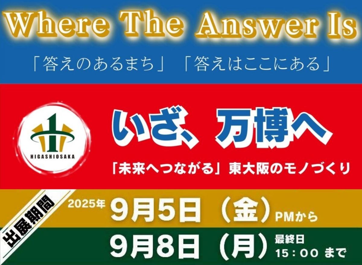このたび、大阪・関西万博に出展する東大阪ブランド企画展において、弊社製品サンプルが展示されることになりました。