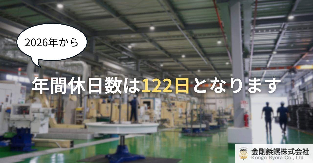 今回はお知らせです。タイトルの通り、弊社の年間休日数は2026年1月から前年比+2日の122日となります。