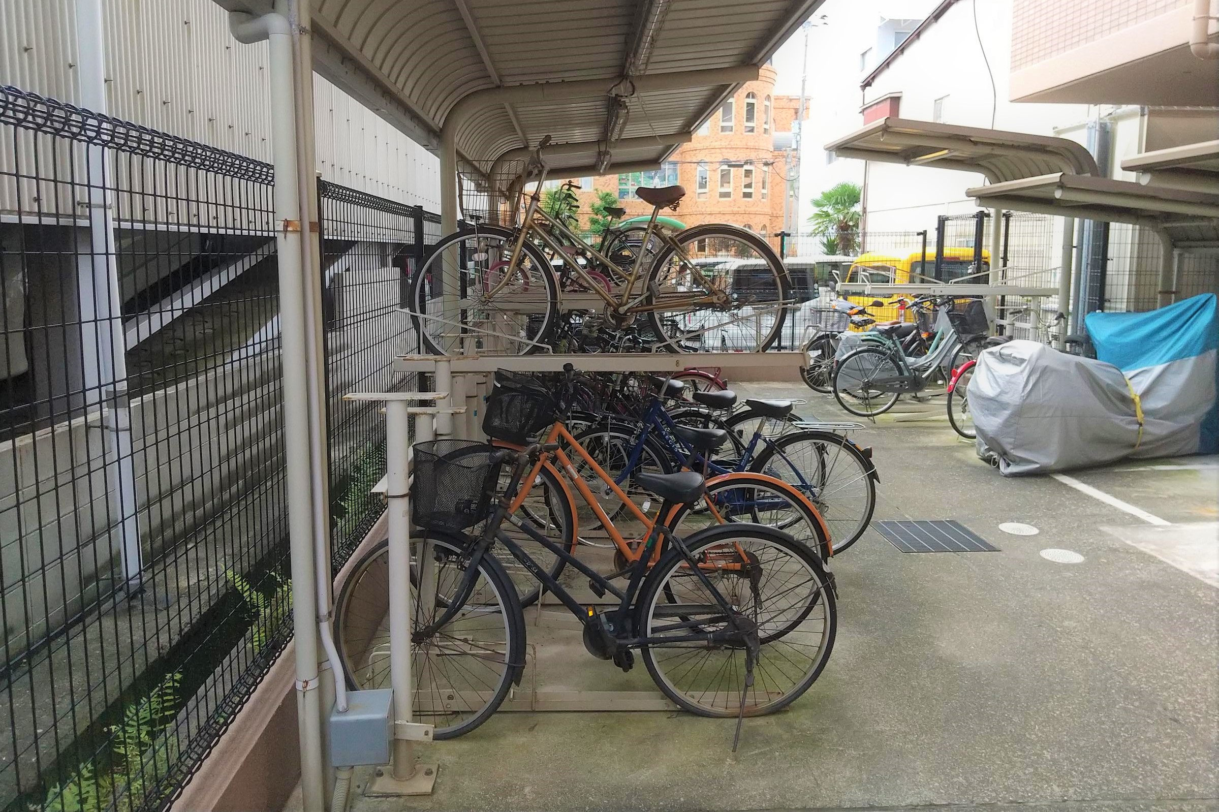 2020-07-20 活用事例 サイクルスタンド(自転車用車輪止め) JR鴻池新田駅近くのマンションの駐輪場にて。(当マンション在住の弊社社員より提供いただきました。)サイクルスタンドに使用されています。築17年、当時の主流ということで六価クロメートめっきを施されています。今なら環境に配慮した三価クロメートめっきかもしれません。