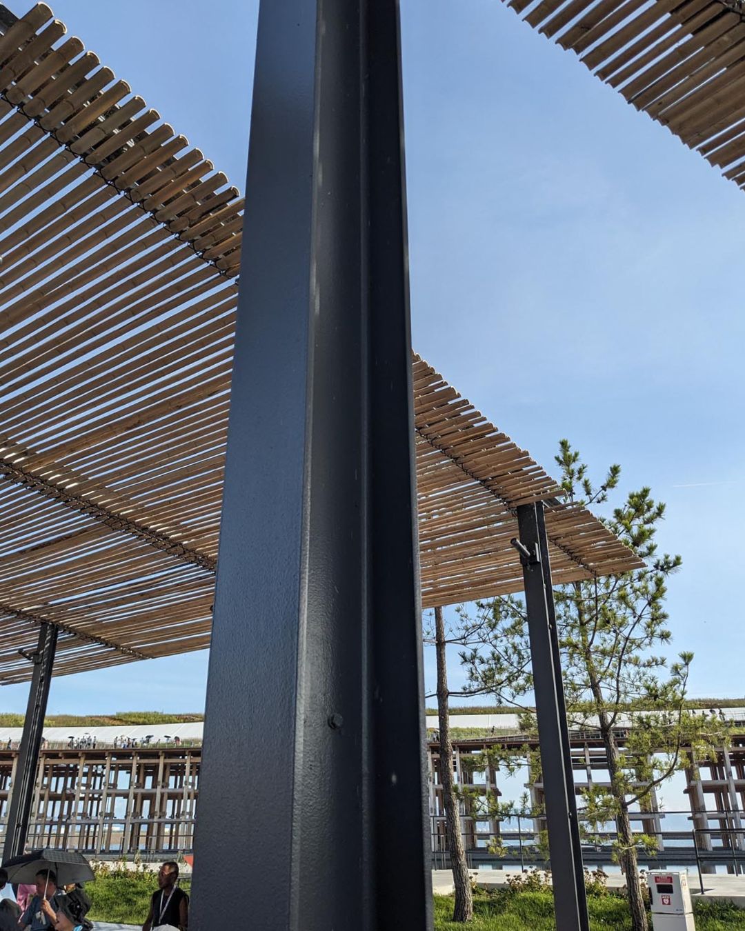 大阪・関西万博内の日除けエリア支柱で、当社の六角ボルトを発見しました!