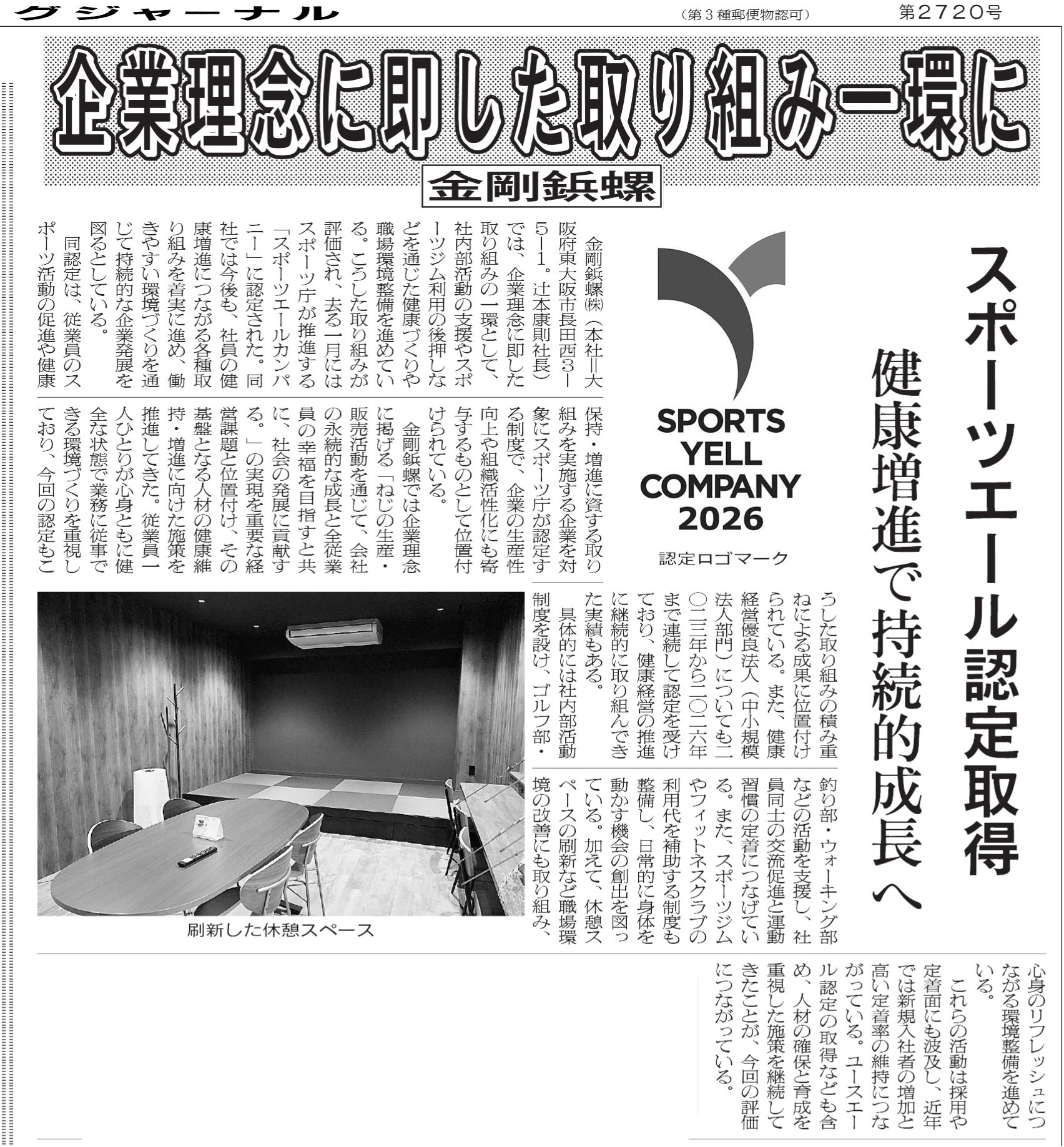 4月7日発行のファスニングジャーナルに、当社の「スポーツエールカンパニー2026」認定取得に関する特集記事を掲載いただきました。