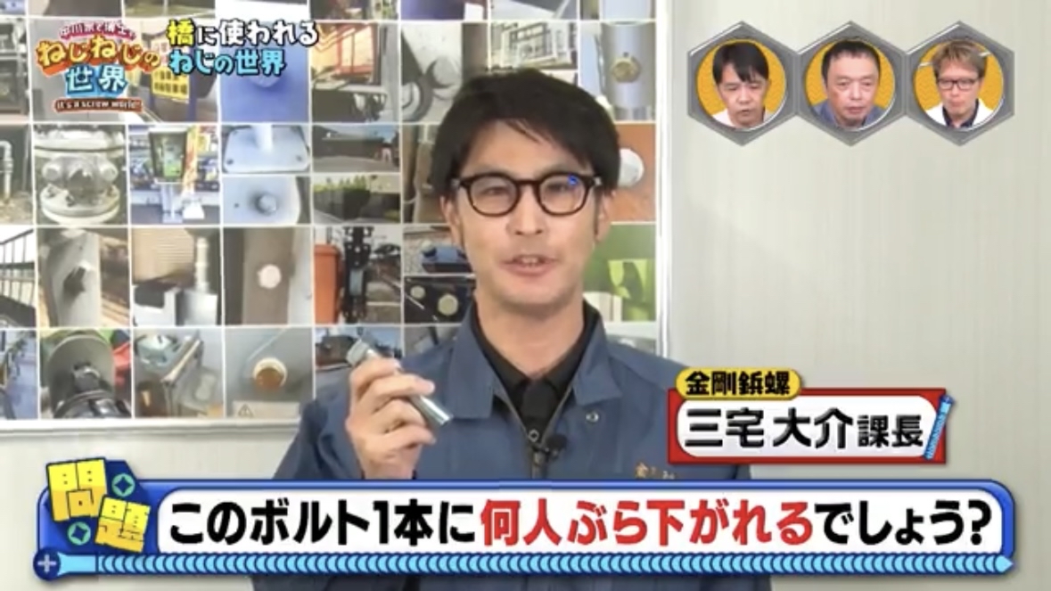 12月に続き、1月も関西テレビ様で放送中の「中川家と博士のねじねじの世界」に出演いたしました。