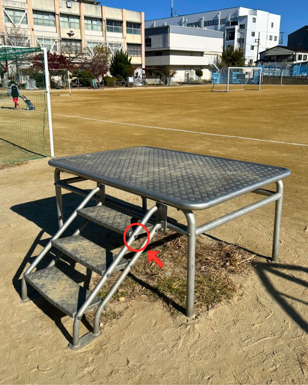 小学校の朝礼台で、当社の六角ボルトを発見しました!